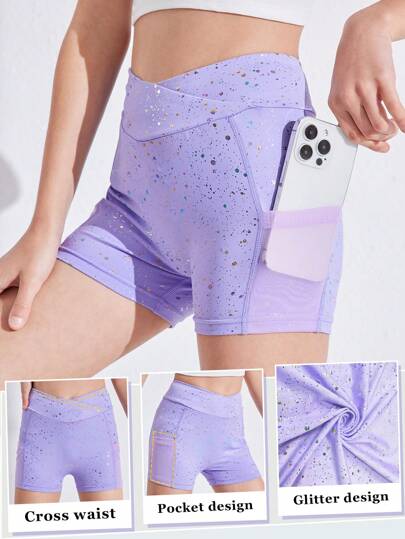 SHEIN 少女彩色閃粉印花運動服 - 淡紫色 - 查看 3
