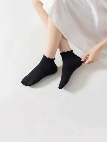 16雙黑白簡單可愛日常透氣女短襪,帶有蘑菇形邊緣 - 黑與白 - 查看 5