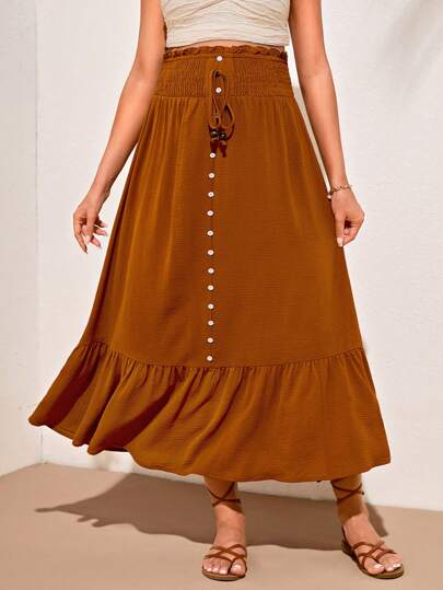 SHEIN 孕婦海島假期超高腰寬鬆裙 - 橘色 - 查看 1