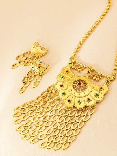 3入組復古豪華弦月耳環和項鍊套裝,配有金幣流蘇珠寶,適用於女性婚禮和派對場合 - 金黃色 - 查看 1