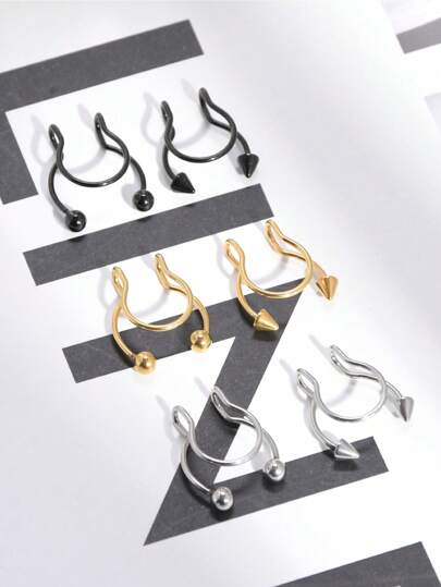 1個時尚不銹鋼錐形U型分隔器仿假鼻環馬蹄環夾式珠寶 - 多色 - 查看 16