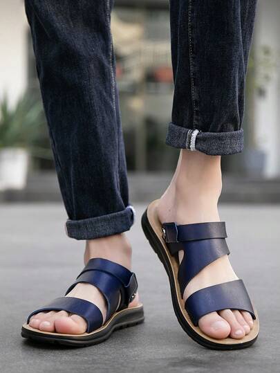 新款男士时尚休闲舒适海滩度假风格凉鞋,适合室内和室外穿着 - 深藍 - 查看 1