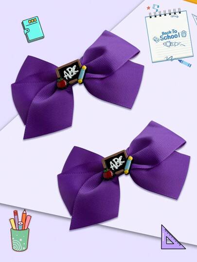 2个4.7英寸返校季发夹,适合女孩、青少年,带夹子,可用于节日、派对、毕业季、开学第一天、教室、学生等场合。 - 紫色 - 查看 2