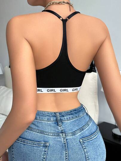 字母圖案無線胸罩 - 黑色 - 查看 4
