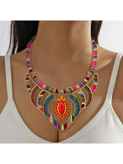 1入復古波西米亞風格多色鑲嵌水晶珐琅吊墜項鍊,手工花卉串珠寶石項鍊,適用於女性日常佩戴、派對、跳舞、約會、節慶禮物 - 彩色的 - 查看 1