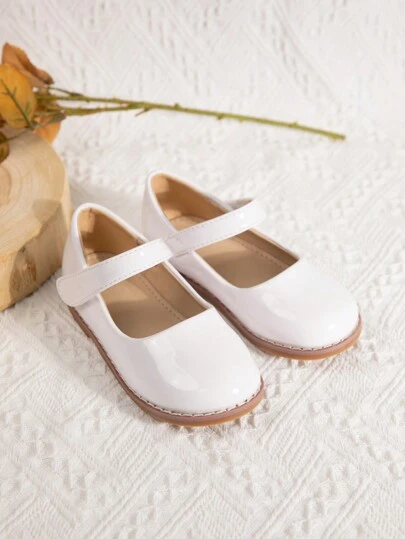 時尚女童瑪莉珍鞋配有扣帶和魔鬼氈封口,純色,平底 - 白色 - 查看 1