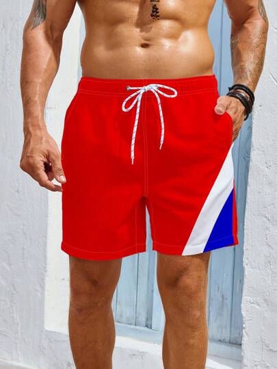 Surfspeed 男士束口線條拼色口袋寬鬆舒適時尚泳褲 - 彩色 - 查看 1
