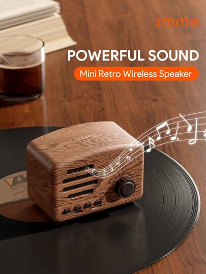 JMMO 复古扬声器无线迷你扬声器,具有清晰立体声丰富低音的扬声器,复古便携式扬声器兼容 iPhone、Android 设备和平板电脑 - 棕色 - 查看 1