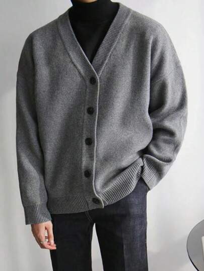 White Yue 男士 V 领纯色针织开衫,宽松版型,百搭时尚,适合通勤,也适合圣诞节、新年等场合,可作为新年服装或新年服饰。 - 灰色 - 查看 1