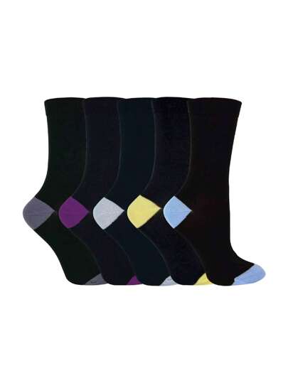 Sock Snob 5 Pack Ladies Soft Top Cotton Rich Socks With Coloured Heel & Toe (CS2) - Fast Shipping And Quick Delivery - 黑色的 - 查看 1