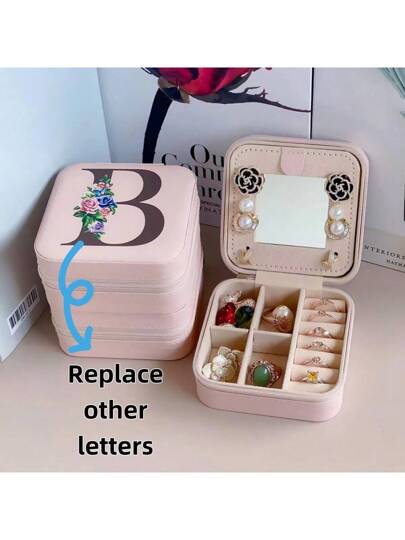 镜面字母珠宝盒 PU字母珠宝盒旅行便携式耳环项链收纳盒 - 粉色 - 查看 1