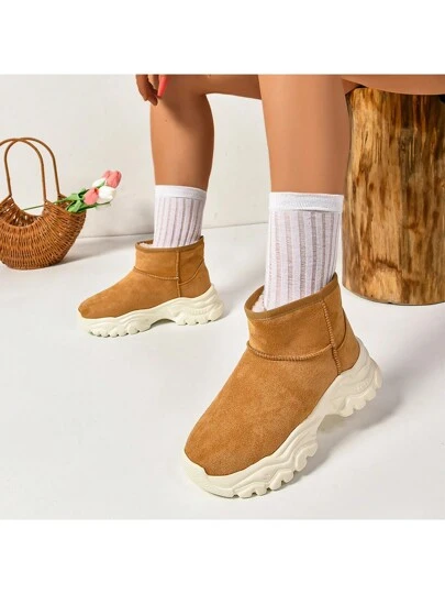 2024 新款女士时尚户外保暖轻便加厚抓绒防水防滑中筒雪地靴冬季运动徒步鞋防滑耐磨 - 卡其色 - 查看 1