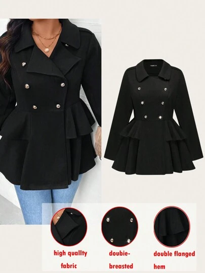 Calvaya 大码休闲双排扣夹克,秋冬 - 黑色 - 查看 4