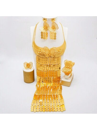 迪拜奢华大流苏身体首饰套装新娘派对长款镀金非洲大项链耳环手镯戒指套装 - BJW237-CC4 - 查看 1