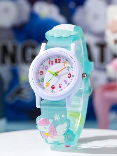 1件可爱独角兽图案石英手表,马卡龙色运动手表,适合青少年、男孩和女孩,适合生日、万圣节、送礼 - 淺藍色 - 查看 4