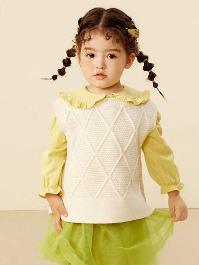 mini bala 男童女童针织背心宝宝时尚个性儿童背心马甲潮 - 白色 - 查看 1