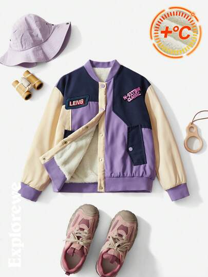 SHEIN 都市休闲风格多色拼布城市补丁绗缝舒适保暖飞行员夹克,适合青少年女孩,适合城市街头摄影、日常休闲外出 - 彩色 - 查看 1