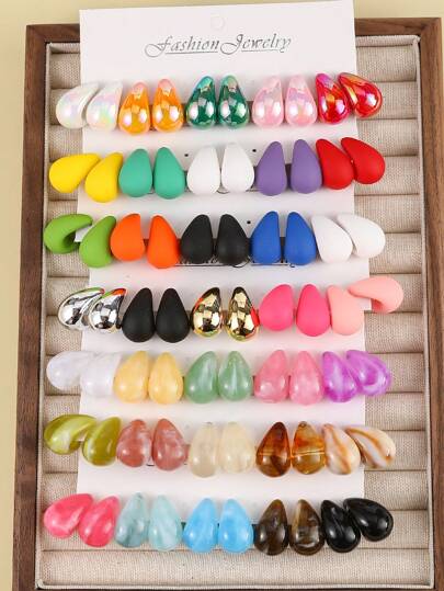 10-70件/套时尚金色&多巴胺彩色水滴形设计耳环套装,轻盈材质,零负担,适合女士日常装扮 - 水滴形狀 - 查看 13