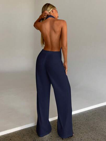 Aloruh 女式秋冬新款性感时尚前高领后低胸紧身连体裤 - 藏蓝色 - 查看 2