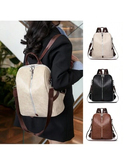 复古风格大容量中链背包,百搭女士背包 - 彩色 - 查看 1