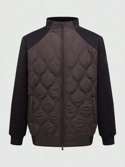 Manfinity Homme 男式插肩袖撞色绗缝加厚外套,秋冬款 - 咖啡棕 - 查看 1