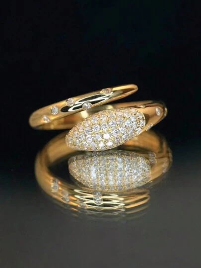 1 件优雅 INS 风格 18K 镀金 925 纯银方晶锆石蛇形戒指,可调节,适合女士,适合日常佩戴、节日和派对、珠宝礼物 - 金色 - 查看 6