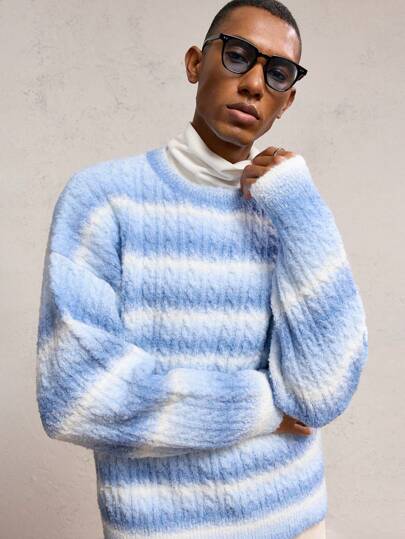 AKNOTIC Party 男士宽松圆领超大拼色长袖针织粗针织毛衣,适合秋冬季、度假、老钱男士、男友礼物 - 彩色 - 查看 8