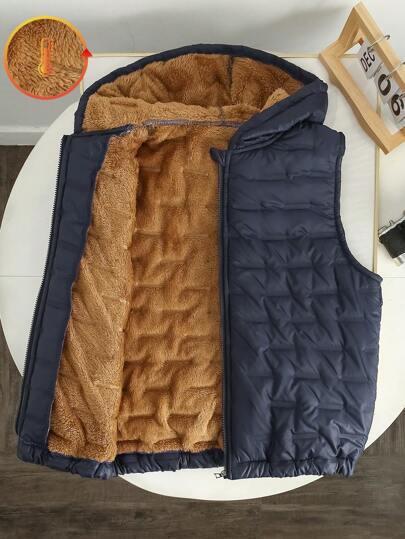 青少年男孩冬季加厚保暖超声波压花无袖棉袄 - 藏蓝色 - 查看 1