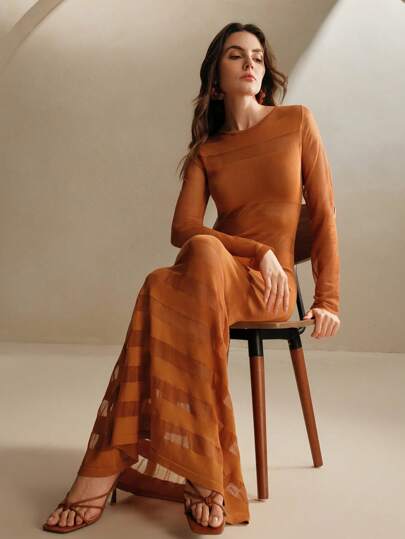 Anewsta 时尚透视网眼奢华美人鱼礼服 - 棕色 - 查看 1