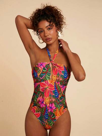 Travachic 印花吊带连体泳衣,简约时尚的日常休闲装 - 彩色 - 查看 1