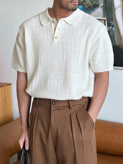 DAZY 男士纯色基本款针织 Polo 衫,夏季 - 白色 - 查看 10