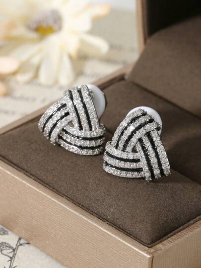 2件时尚个性镶嵌锆石耳夹配硅胶三角滴油百搭女士耳环高端饰品可赠送朋友情人节礼物 - 女士耳夾 - 查看 1