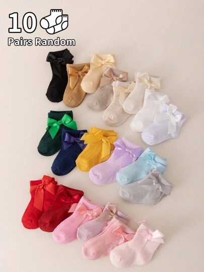 10 双婴儿/幼儿蝴蝶结袜子,舒适中筒袜,适合 0-3 岁儿童,春秋季 - 玫紅色 - 查看 1