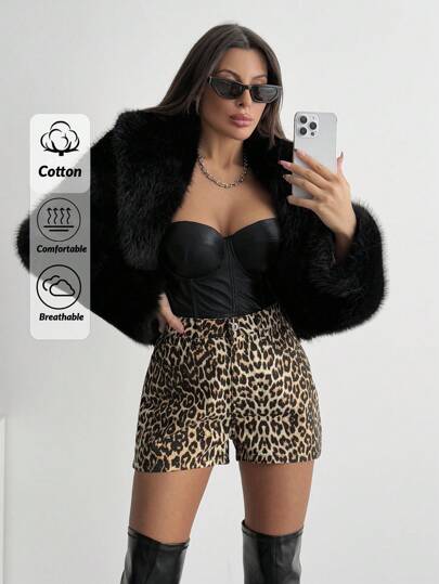 EURMUSE 女式豹纹图案时尚宽松牛仔短裤 - 彩色 - 查看 1