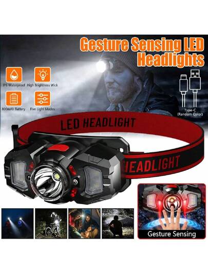 1/2x Sensor LED+COB Headlamp Head Torch Rechargeable Headlight Lamp Super Bright - 紅色 - 查看 1