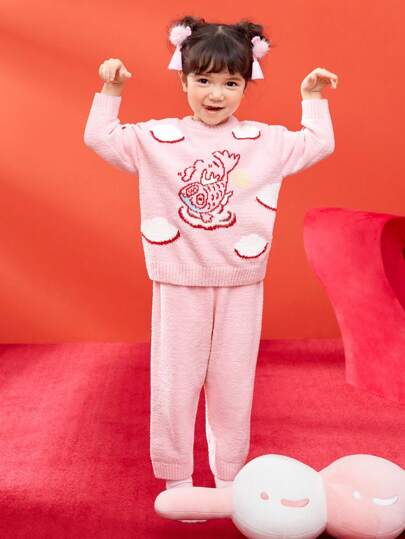 Balabala Baby Red Fleece Set, Warm and Festive Lunar New Year Wear - 紅白色調 - 查看 1