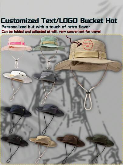 1 件定制抽绳文字/LOGO 男女通用夏季户外休闲透气可调节渔夫帽,夏季西部牛仔帽适合户外、登山、旅行、徒步旅行、钓鱼,是送礼的最佳选择 - 圖案訂製款 - 查看 1