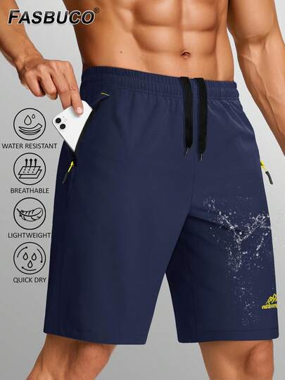 FASBUCO Men's Hiking Shorts 9" Quick Dry Athletic Shorts With Zipper Pockets For Gym, Workout, Basketball, Running - 藏蓝色 - 查看 1
