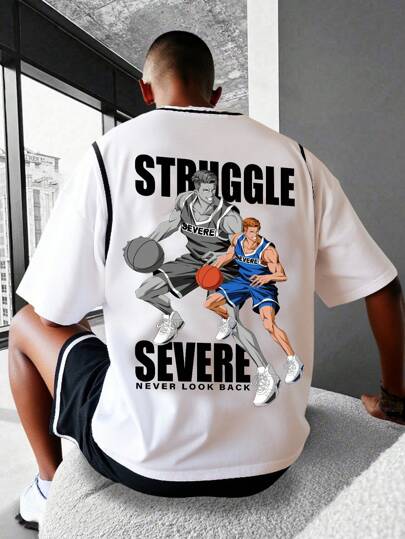 SHEIN 2 件套青少年男孩休闲短袖 T 恤和短裤套装,街头朋克摇滚学院风,适合日常、派对、音乐节、春夏、运动 - 彩色 - 查看 6