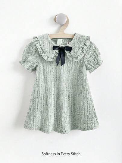 Cozy Pixies 女婴装饰蝴蝶结彼得潘领短袖束腰连衣裙 - 綠色 - 查看 1