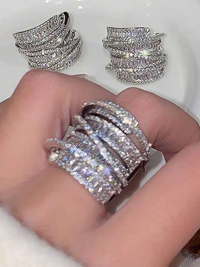 jealous young 1枚梦幻多层立方氧化锆订婚戒指,适合女性和女孩日常佩戴,可打开,珠宝礼品 - 白金 - 查看 1