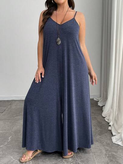 SHEIN LUNE 大码女式春夏花卉连体裤,休闲中式休闲度假服装,适合圣帕特里克节、复活节、派对、聚会、春夏 - 霧霾藍 - 查看 1