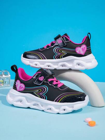 1 双儿童/女孩时尚反光镜面运动鞋,心形彩色,可调节钩环扣,易于穿着,适合派对、日常穿着、在校学生 - 彩色 - 查看 10