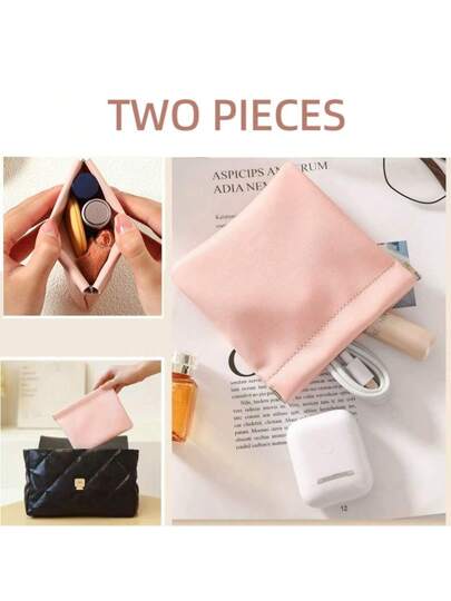 2 件/套男女通用零钱包,自动闭合紧凑型小袋,适用于耳机、电缆、充电器和小件必需品,米色配金色拉链,迷你化妆包,适合男士、女士和学生 - 粉色 - 查看 2