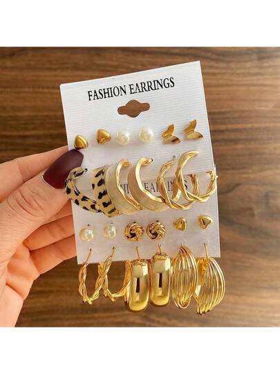 一套 11 款不同款式的奢华宫廷风格爱心蝴蝶花耳环 - 金色 - 查看 1