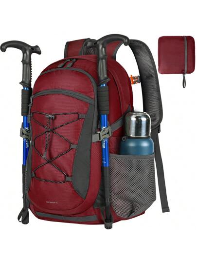 40L 防水抗撕裂尼龙徒步背包,轻便可折叠,适合男女户外旅行 - 紅色 - 查看 1