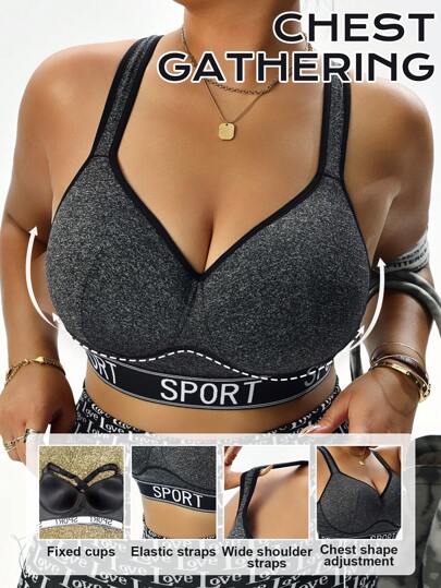 Easithlete 加大码耐冲击运动文胸,带固定罩杯、可调节肩带和腰部,时尚提花织带运动内衣 - 黑色 - 查看 5