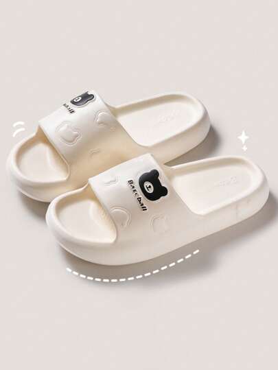 新品春夏卡通熊EVA软底可爱简约情侣拖鞋舒适休闲装防臭防滑沙滩/浴室凉鞋 - 白色 - 查看 1