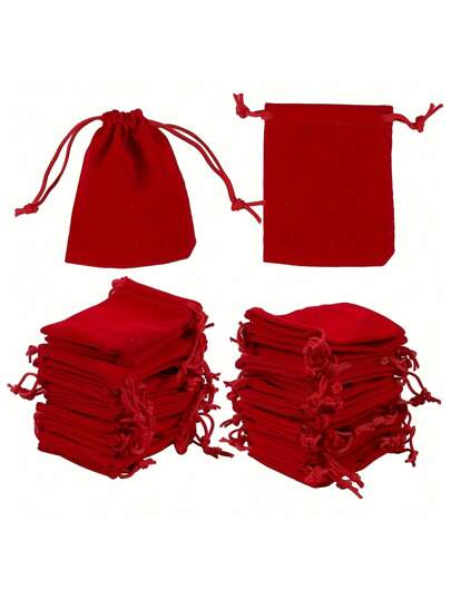 10/50 件红色礼品袋(带领带)适用于婚礼派对,红色吊带储物袋,尺寸 2.75x3.54 英寸和 3.54x4.72 英寸 - 紅色禮品袋 - 查看 1