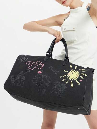 女士轻便时尚大容量手提包、通勤健身包、男女旅行手提包 - 黑色 - 查看 1